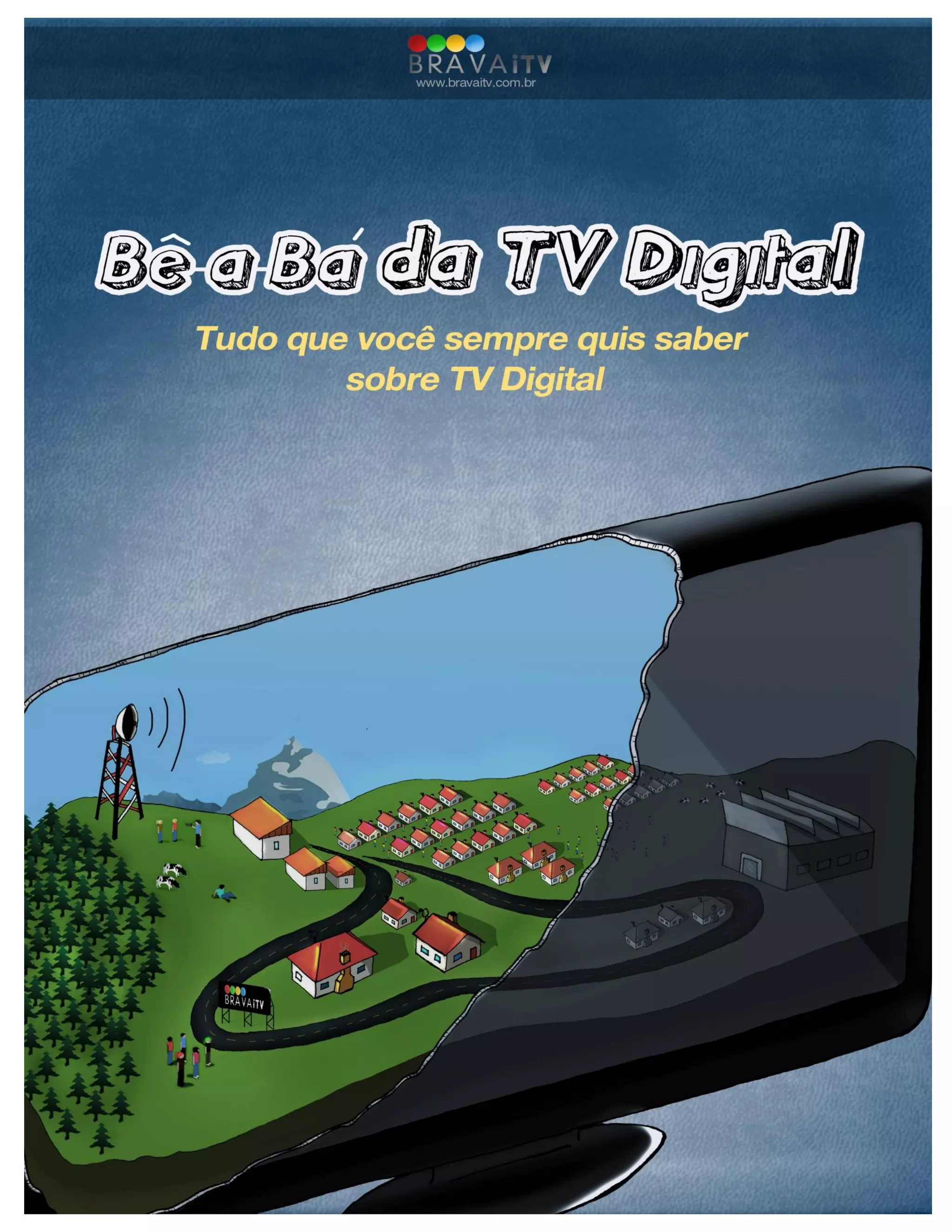 O documento descreve o que é a TV digital no Brasil, como funciona a transmissão e recepção do sinal digital, e as possibilidades de interatividade trazidas pela plataforma Ginga. Explica que a TV digital digitaliza imagem e som para transmissão, permitindo alta definição e aplicativos interativos, diferente da TV a cabo. Também aborda conversores e televisores digitais, necessários para receber o sinal, e detalha como a interatividade funciona através de aplicativos transmitidos.