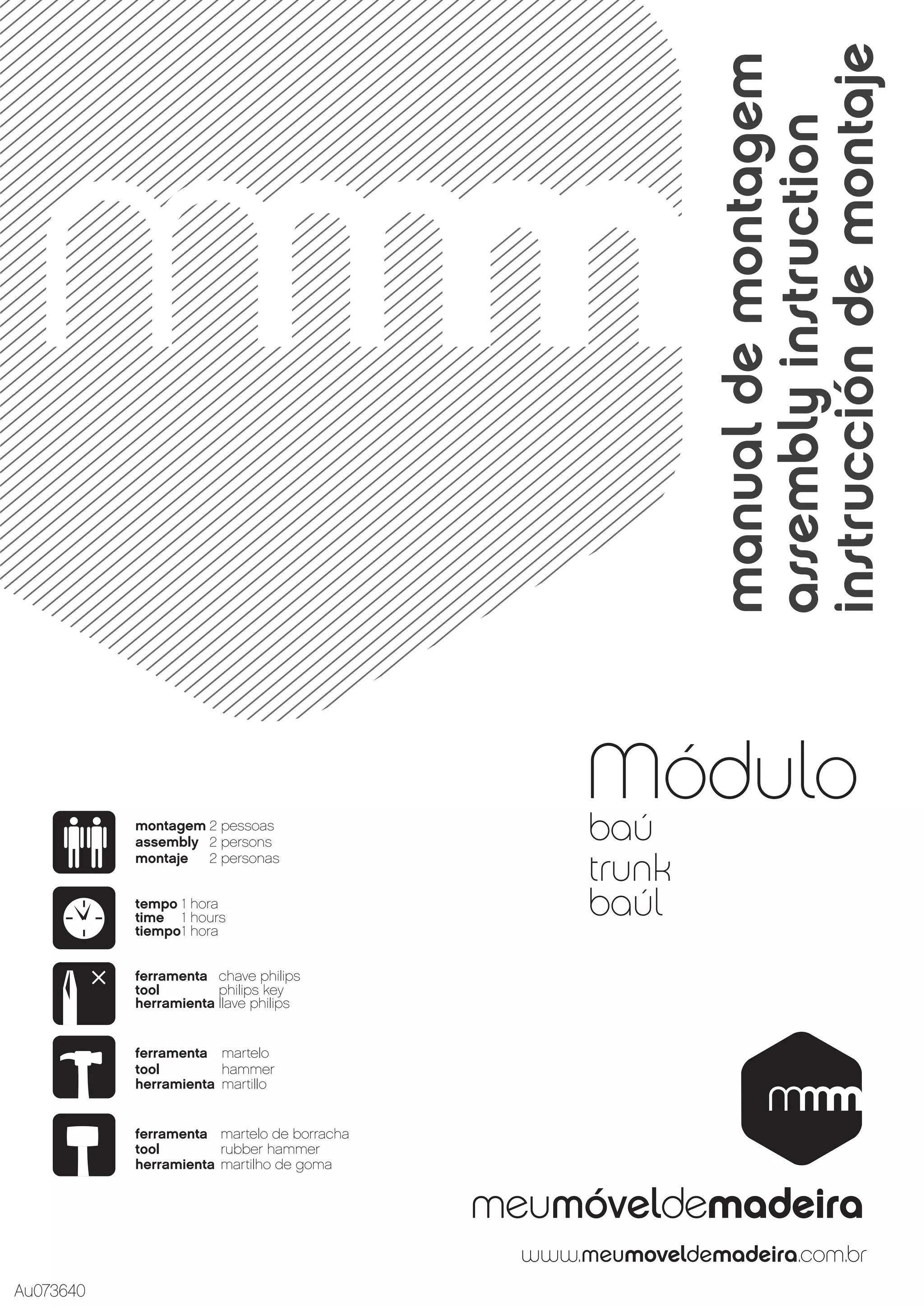 Este documento fornece instruções detalhadas para a montagem de um baú por duas pessoas. A montagem deve ser realizada em uma superfície limpa e plana, utilizando ferramentas específicas e atenção a segurança. Recomenda-se verificar periodicamente o aperto dos parafusos e evitar danos durante o processo.