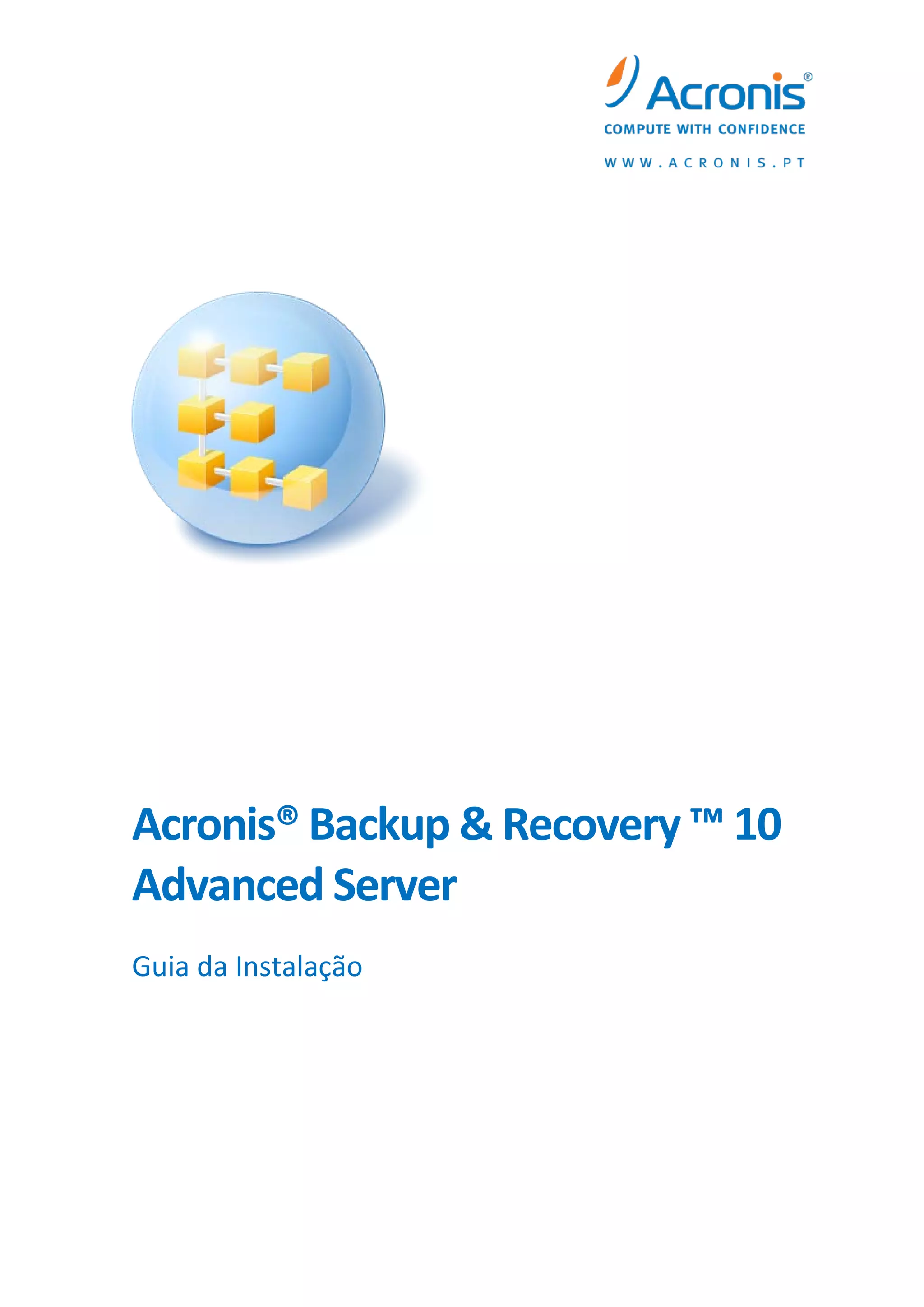 Este documento fornece um guia para a instalação do Acronis Backup & Recovery 10 Advanced Server. Resume os principais componentes do produto e descreve os passos para instalar e configurar os agentes, o servidor de gestão e os nós de armazenamento.