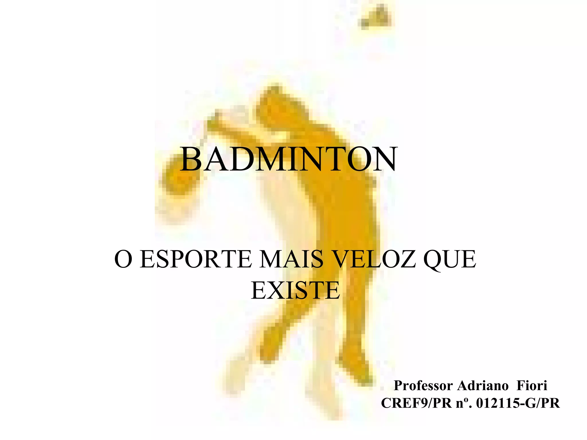 O documento fornece um resumo sobre o esporte de badminton, descrevendo sua história, regras, equipamentos e fundamentos básicos. O badminton é apresentado como um dos esportes mais velozes que existe e segundo mais praticado no mundo. Sua prática no Brasil vem crescendo, com conquistas em competições internacionais.