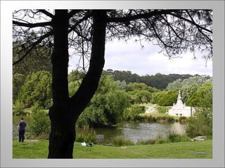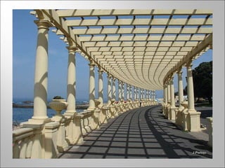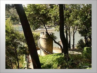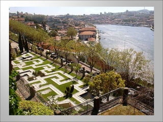 Este documento fornece um roteiro turístico da cidade do Porto, Portugal, destacando seus principais bairros históricos, miradouros e jardins. O texto descreve brevemente os bairros da Sé, Miragaia, Massarelos, Barredo e outros, bem como os melhores locais para admirar a paisagem, como da Sé para a Vitória. Finalmente, o documento lista diversos parques e jardins públicos notáveis da cidade, como a Casa e Jardim de Serralves, o Parque da Cidade e