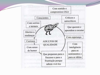 Este documento discute fatores desmotivadores e estratégias para professores lidarem com desafios. Ele lista questões como remuneração, público atendido e transformações sociais como causas de desânimo, e oferece dicas como estabelecer limites, valorizar o tempo livre e incentivar o trabalho em grupo.