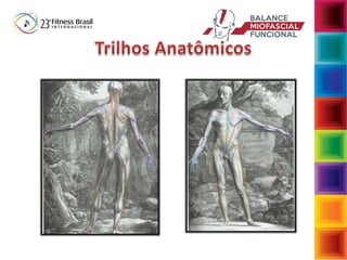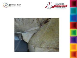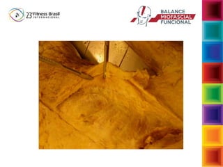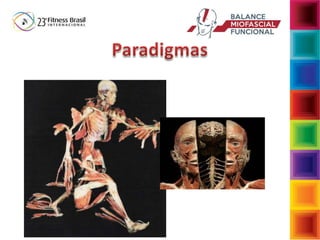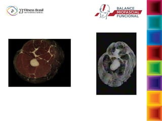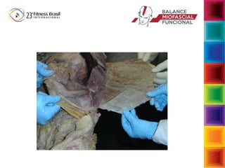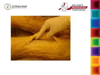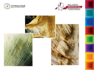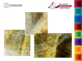 O documento aborda a interdependência das fibras musculares e do tecido conjuntivo no sistema musculoesquelético, enfatizando a importância da biomecânica e da função muscular no desempenho e na postura. Descreve a função da fáscia e suas reações a cargas, assim como as consequências de movimentos inadequados que podem levar a disfunções musculoesqueléticas. Sugere intervenções para restaurar a função normal através de exercícios que fortalecem e estabilizam o corpo, enfatizando a conexão entre musculatura e fáscia.