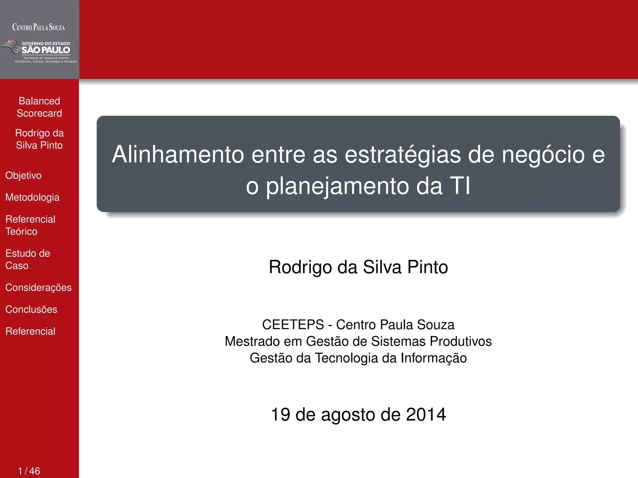 O documento descreve um artigo que apresenta o Balanced Scorecard como uma ferramenta para medir o desempenho da tecnologia da informação em uma empresa. Ele discute o objetivo, metodologia e referencial teórico do Balanced Scorecard, incluindo suas quatro perspectivas, e apresenta um estudo de caso de sua implementação na área de TI de uma empresa.