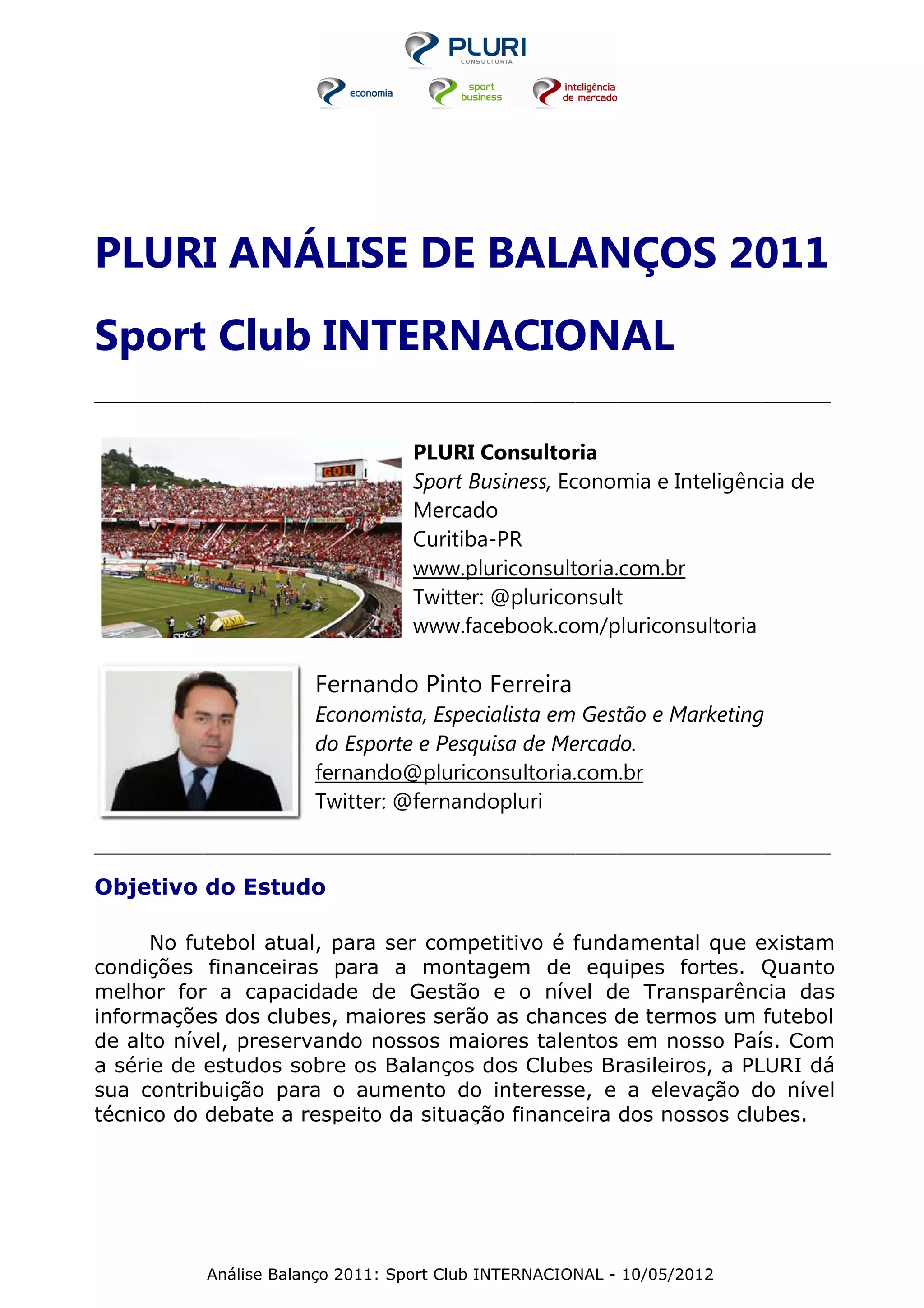 O Internacional teve um crescimento moderado de receitas em 2011, mas viu seus gastos aumentarem ainda mais, gerando um déficit operacional. Seu endividamento cresceu significativamente, embora permaneça em nível controlado. Com bons resultados em campo, o clube obteve uma pontuação média no índice de eficiência da gestão do futebol.