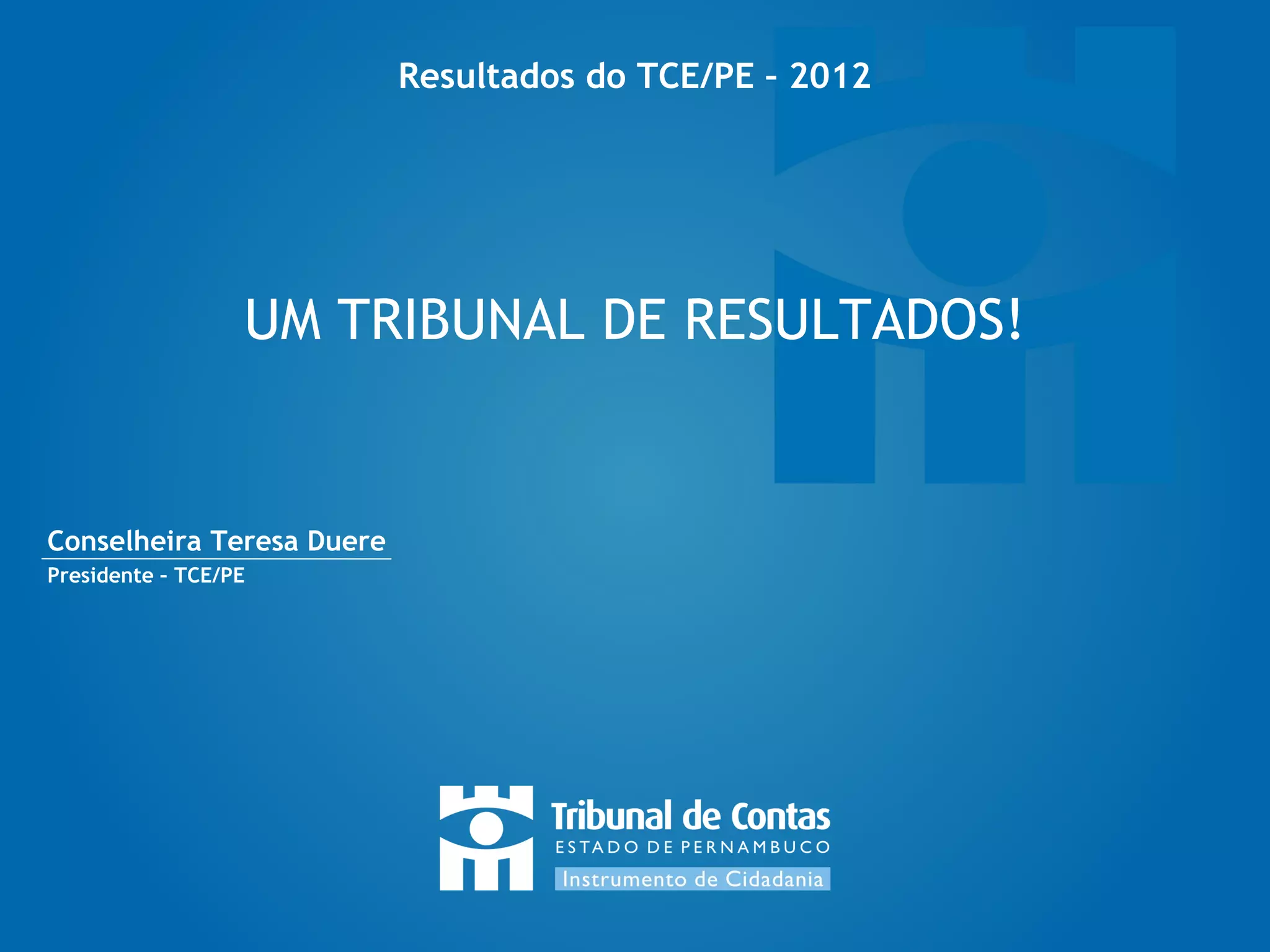 O Tribunal de Contas de Pernambuco destacou em 2012 suas iniciativas em transparência, como a regulamentação da Lei de Acesso à Informação e a divulgação de dados sobre remuneração de servidores. Além disso, o tribunal contribuiu para o afastamento de prefeitos por improbidade administrativa e a recuperação de receitas, resultando em um benefício financeiro de aproximadamente R$ 803 milhões às gestões pública. O documento também menciona a implementação de processos eletrônicos e novas plataformas de transparência como parte das prioridades de melhoria e efetividade da gestão.