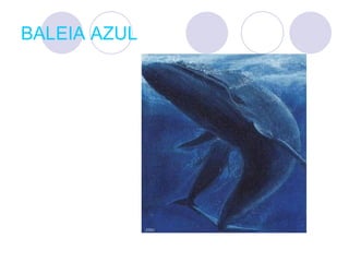 O documento fornece informações sobre três tipos de baleias: a baleia-azul, a baleia-jubarte e a baleia-sardinheira. A baleia-azul foi muito caçada no passado devido ao seu grande tamanho. No Brasil, poucas foram avistadas. A baleia-jubarte também é encontrada no Brasil. A baleia-sardinheira é conhecida por pular e borrifar água para cima, mas é difícil de ser avistada.
