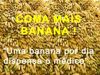 O documento lista os muitos benefícios nutricionais e de saúde das bananas, incluindo que elas fornecem energia sustentada, ajudam a prevenir anemia, tensão alta, depressão e azia, e promovem a saúde mental, digestiva e imunológica. Recomenda-se comer bananas diariamente para obter esses benefícios e manter o corpo saudável.