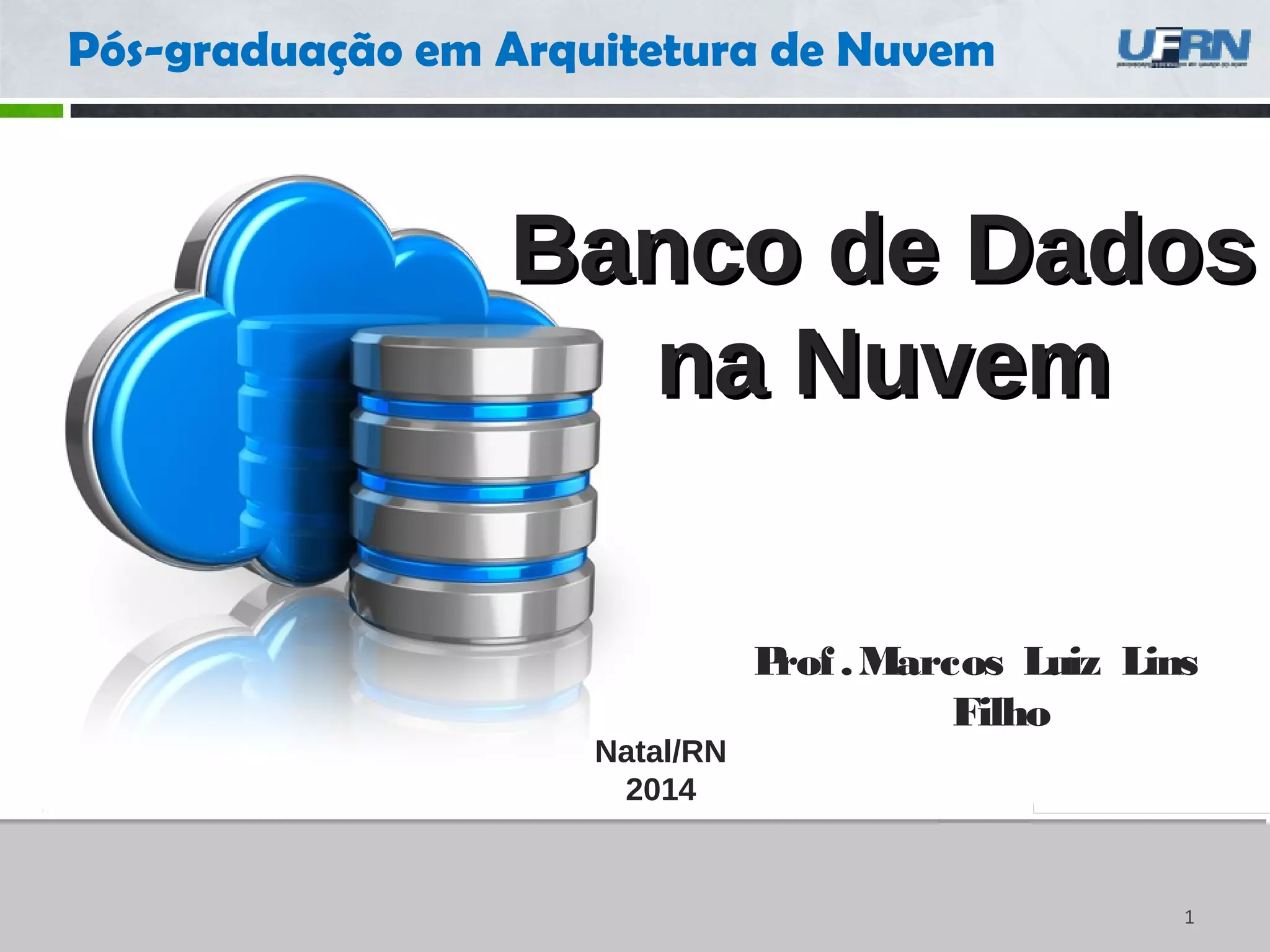 1. O documento apresenta uma agenda de um curso sobre bancos de dados na nuvem e NoSQL, abordando conceitos históricos, tipos de bancos de dados NoSQL e suas características.