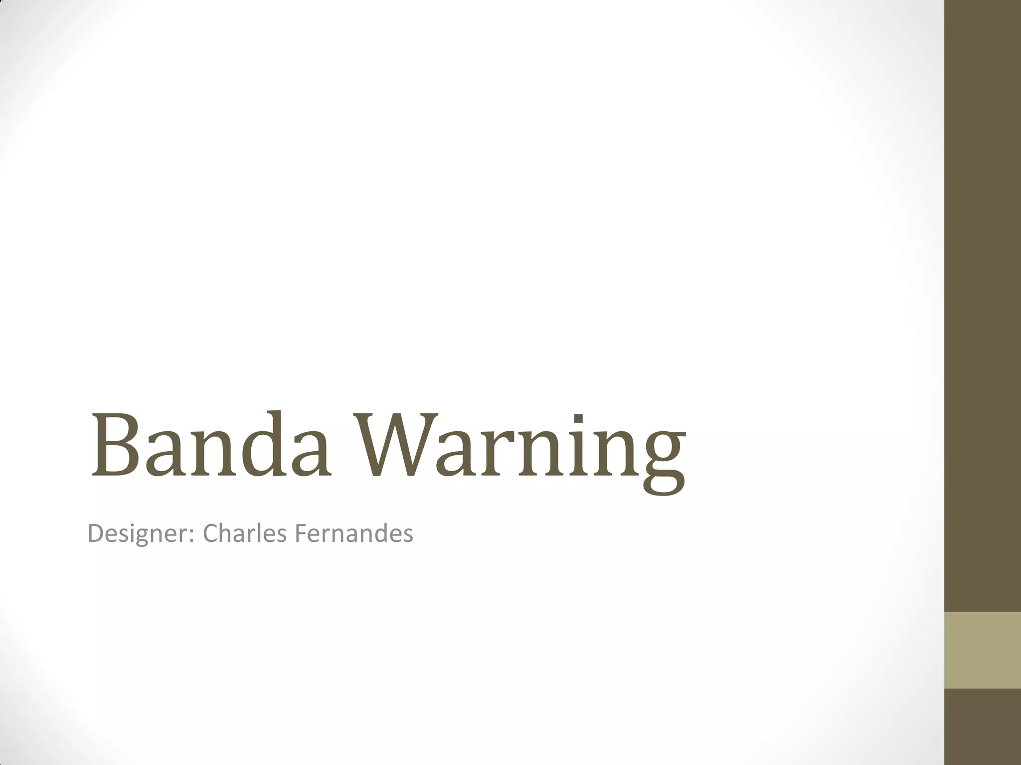 A logo da banda Warning foi concebida para se parecer com uma placa de trânsito, transmitindo a ideia de "atenção" implícita no nome da banda. O documento lista diversos itens de merchandising da banda, incluindo camisetas, CDs, banners, pôsteres e um outdoor, assim como seções do site da banda sobre contato, a banda e a página inicial.