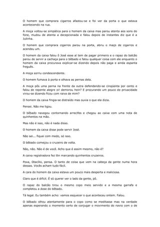 A moça liga para o namorado e mãe para pedir permissão para sair à noite. Enquanto faz as ligações no bar, é assediada pelos homens presentes, que a olham de forma lasciva. Ao terminar as ligações, percebe que está trancada no bar com os três homens, que a cercam de forma ameaçadora.