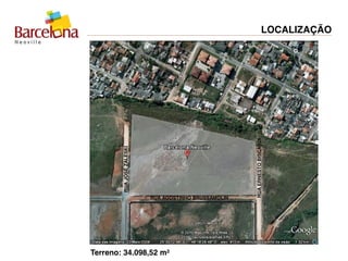 O documento descreve um empreendimento imobiliário com 576 apartamentos distribuídos em 12 torres de 6 pavimentos cada. O terreno tem área total de 34.098,52m2 e contará com diversas áreas comuns internas e externas, como salões de festas, piscinas, quadras esportivas e praças. Os apartamentos terão entre 47m2 e 158m2, com opções de 2 ou 3 quartos, e a estrutura contará com estacionamento, guarita e acessos controlados.