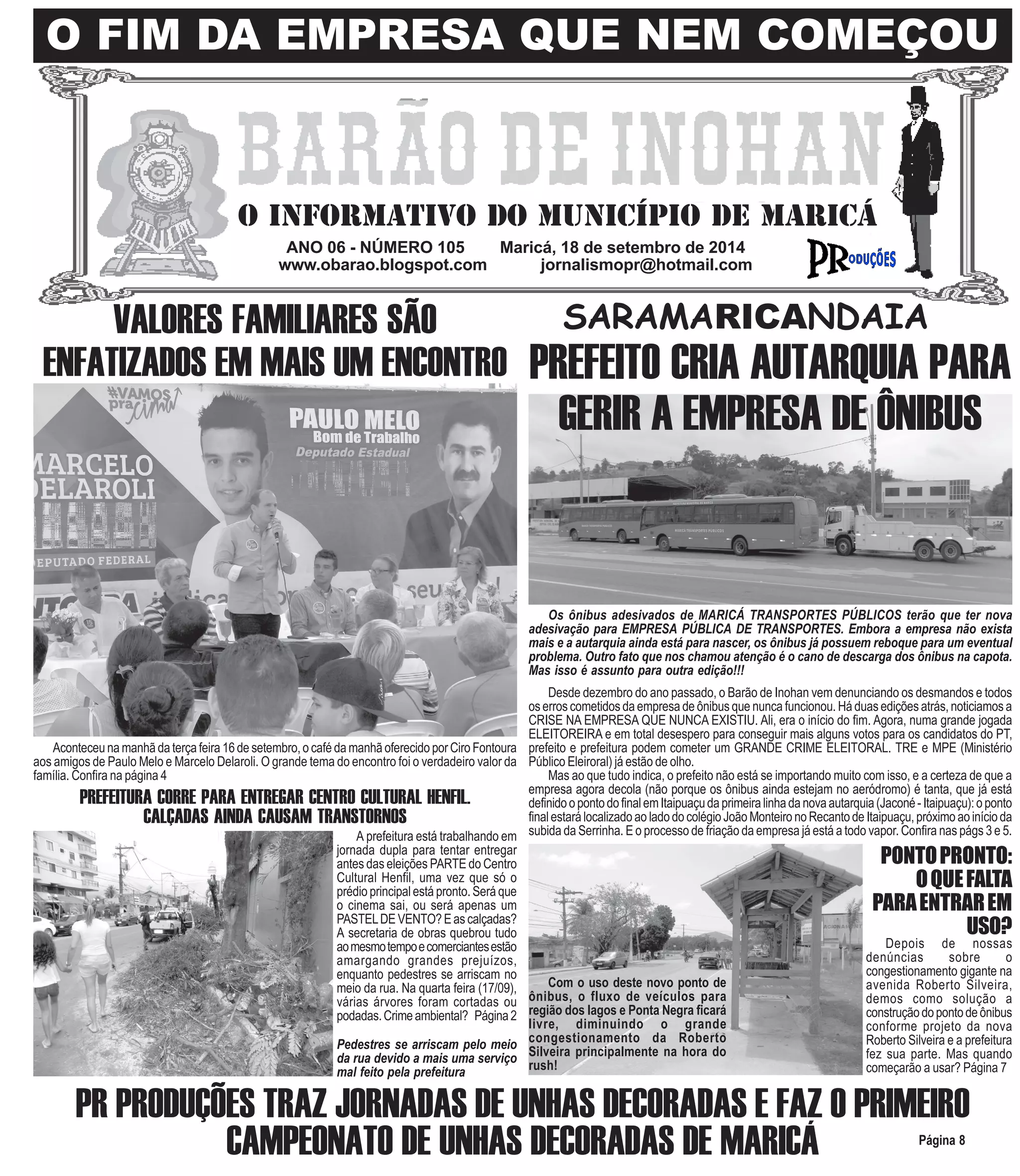 1) O prefeito criou uma autarquia chamada Empresa Pública de Transportes para gerir o sistema de ônibus da cidade, após extinguir a empresa Maricá Transportes Públicos que nunca funcionou;