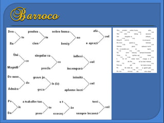 O Barroco teveorigem na Itália e alcançou vários países europeus e algumas de suas colônias, como o Brasil. No Barroco, está presente a tensão que nasce da tentativa de fundir duas visões opostas: a perspectiva antropocêntrica , herdada do Renascimento, e a teocêntrica , resgatada pela Contrarreforma.