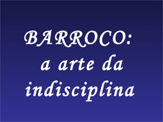 C O documento descreve o Barroco como um período de crise espiritual no século XVII na cultura ocidental, caracterizado por contradições entre sensualismo e religiosidade. Apresenta características da linguagem barroca como o vocabulário selecionado, ênfase em figuras de linguagem e conteúdos sobre conflito e efemeridade. Destaca os principais escritores barrocos brasileiros como Gregório de Matos e seu uso da poesia satírica para criticar a sociedade baiana da época.
