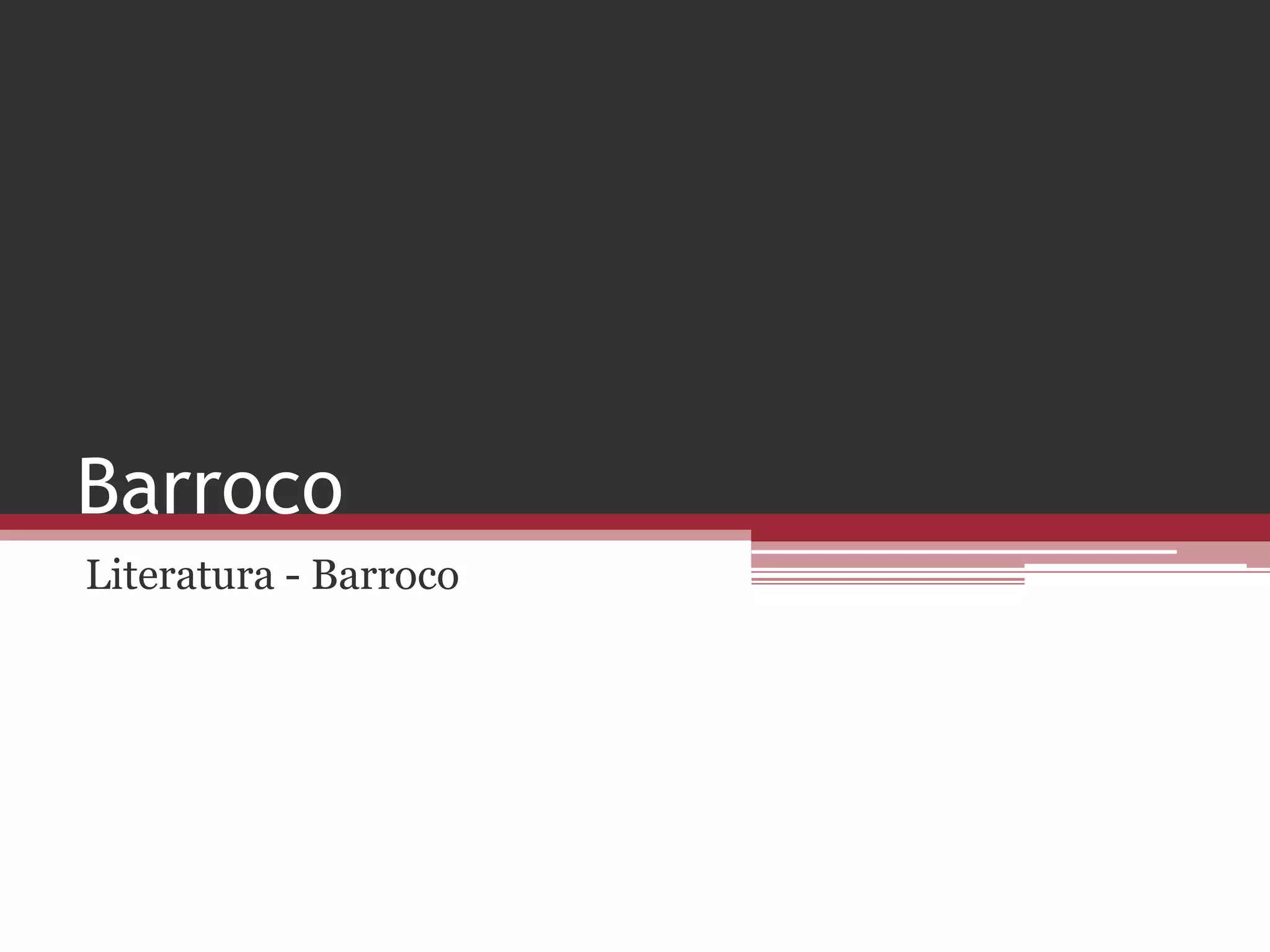 O documento aborda o Barroco na literatura, destacando seu contexto histórico, características estéticas e principais autores brasileiros como Gregório de Matos e Padre Antônio Vieira. Enfatiza a dualidade entre razão e fé, o culto à linguagem rebuscada e a influência da burguesia e das transformações sociais. Também analisa a literatura barroca no Brasil, mencionando a escassez de uma consciência literária na época e as obras significativas dos autores citados.