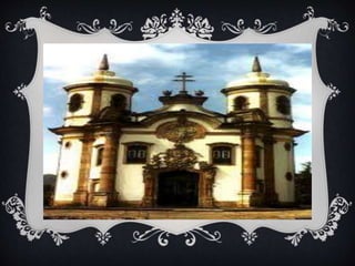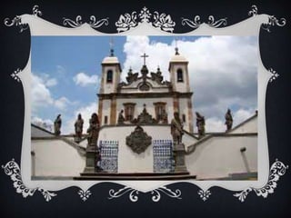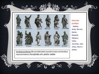 O documento descreve o período Barroco na Europa e no Brasil, especialmente em Minas Gerais durante o ciclo do ouro no século 18. O estilo Barroco enfatizava o dinamismo, movimento e cores nas artes. O principal artista Barroco brasileiro foi Aleijadinho, cujas obras em madeira e pedra-sabão decoraram igrejas em Minas.