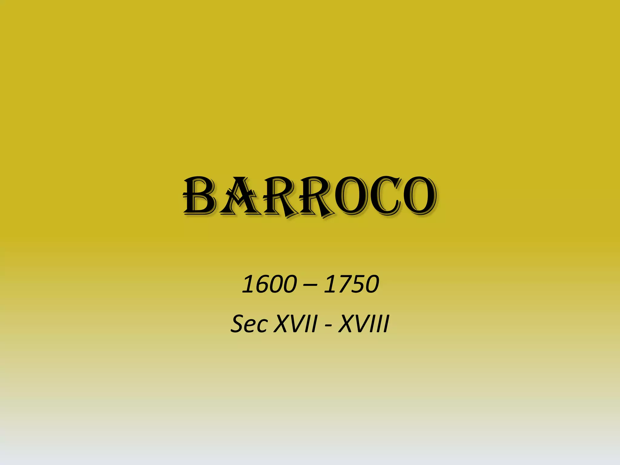 O documento descreve o estilo Barroco na arte, que surgiu na Roma católica entre os séculos XVII e XVIII. O Barroco se caracteriza por formas dinâmicas, contraste de luz e sombra, cores vibrantes e temas religiosos dramáticos. Artistas como Caravaggio e Bernini se destacaram nesse estilo através de obras com naturalismo e expressões emocionais.