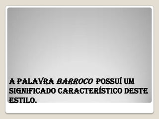 O barroco se desenvolveu no Brasil acompanhando a catequese e colonização, tornando-se um estilo cultural predominante entre os séculos XVI e XVIII. Grandes artistas como Aleijadinho e Manoel da Costa deixaram obras marcantes nas igrejas de Minas Gerais, Bahia e Pernambuco, caracterizadas por emoções e sofrimento em imagens sacras.