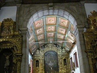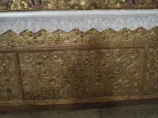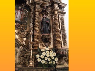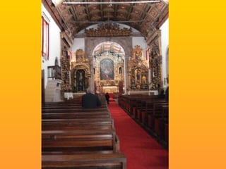 Este documento descreve vários locais religiosos no município de Gondomar que apresentam características do estilo barroco, incluindo igrejas, capelas e mosteiros do século XVIII. Detalha elementos arquitetônicos como altares, tribunas, frontões e portais decorados com volutas, conchas e talha dourada.