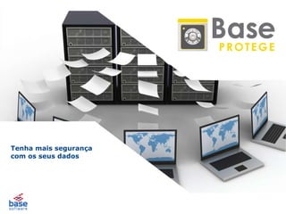 O documento descreve o 'Base Protege', uma solução para aumentar a segurança dos dados em empresas, automatizando processos de verificação e backup dos sistemas de gestão imobiliária. Ele enfatiza a importância de manter dados em locais geograficamente distintos e realizar backups mensais e diários para garantir a integridade e a disponibilidade dos dados. A empresa, Base Software, oferece suporte e serviços relacionados desde 1984, destacando-se no setor imobiliário.