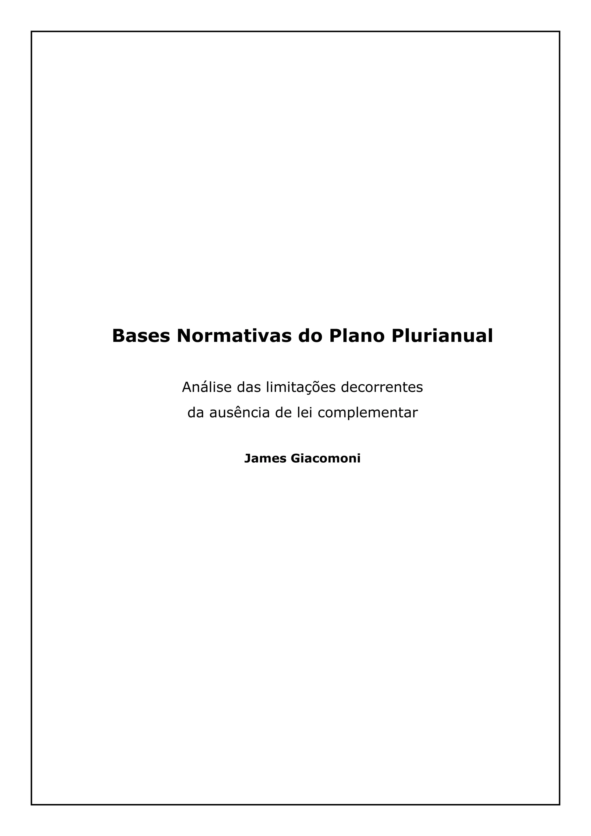 Este documento discute a ausência de uma lei complementar que regulamente o Plano Plurianual (PPA) previsto na Constituição Federal, analisando as limitações decorrentes desta carência regulatória. Apresenta brevemente os esforços para elaborar projetos de lei complementar na década de 1990 e possíveis razões para a não aprovação. Identifica pontos sem definições como o conteúdo e prazos do PPA e sua integração com outras leis orçamentárias.