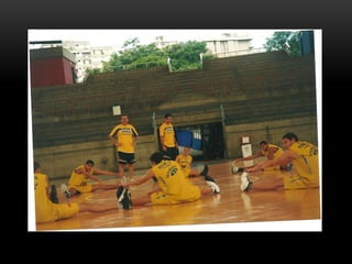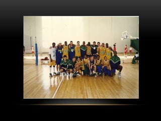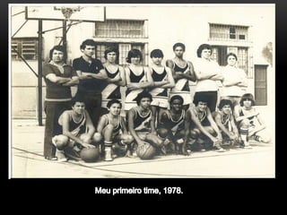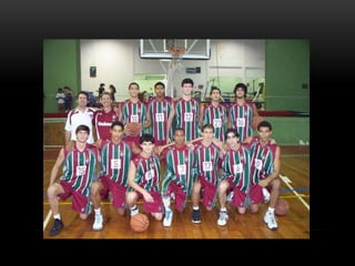 O documento descreve as etapas de desenvolvimento no basquetebol, divididas em três momentos: 1) Iniciação até os 15 anos focada no lado lúdico e na universalização dos praticantes, 2) Entre 16-18 anos com definição das posições e se o atleta seguirá no alto rendimento, 3) Após 18 anos focado no alto rendimento com aperfeiçoamento técnico e situações de jogo. Também aborda preparação física, psicologia esportiva e clichês do esporte.