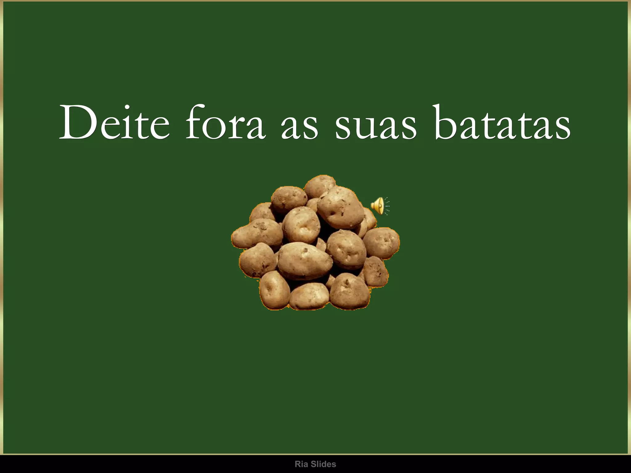 Um professor pediu aos alunos que trouxessem batatas representando pessoas que os magoaram e as carregassem por uma semana. Carregar as batatas tornou-se incômodo com o mau cheiro e peso, assim como carregar mágoas afeta negativamente a vida das pessoas. Os alunos aprenderam que "carregar mágoas é tão ruim quanto carregar batatas".