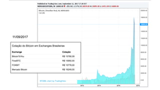 O documento explora o conceito de blockchain e sua relação com o bitcoin, destacando a descentralização e transparência que a tecnologia proporciona em transações financeiras. Aborda também o funcionamento da mineração de bitcoins, suas características, limitações e a importância do sistema em evitar fraudes. Além disso, menciona a evolução da recompensa por mineração e a crescente dificuldade desse processo.