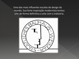 A Bauhaus, fundada em 1919 por Walter Gropius, é uma das mais influentes escolas de design do mundo, unindo arte e indústria com uma forte inspiração modernista. Após uma série de pressões políticas e mudanças de direção, a escola foi oficialmente fechada em 1933, mas suas ideias foram amplamente disseminadas através da emigração de seus professores. A Bauhaus deixou um legado duradouro que influenciou diversas áreas do design e da arquitetura globalmente.