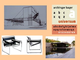 A Bauhaus foi fundada em 1919 na Alemanha por Walter Gropius com o objetivo de unir arte e artesanato. Ensinava design de produto funcional e sem ornamentos desnecessários. Seus principais mestres incluíam Kandinsky, Klee, Breuer e Mies van der Rohe. A escola mudou-se para Dessau em 1925 e encerrou suas atividades em 1933 devido à ascensão do nazismo.