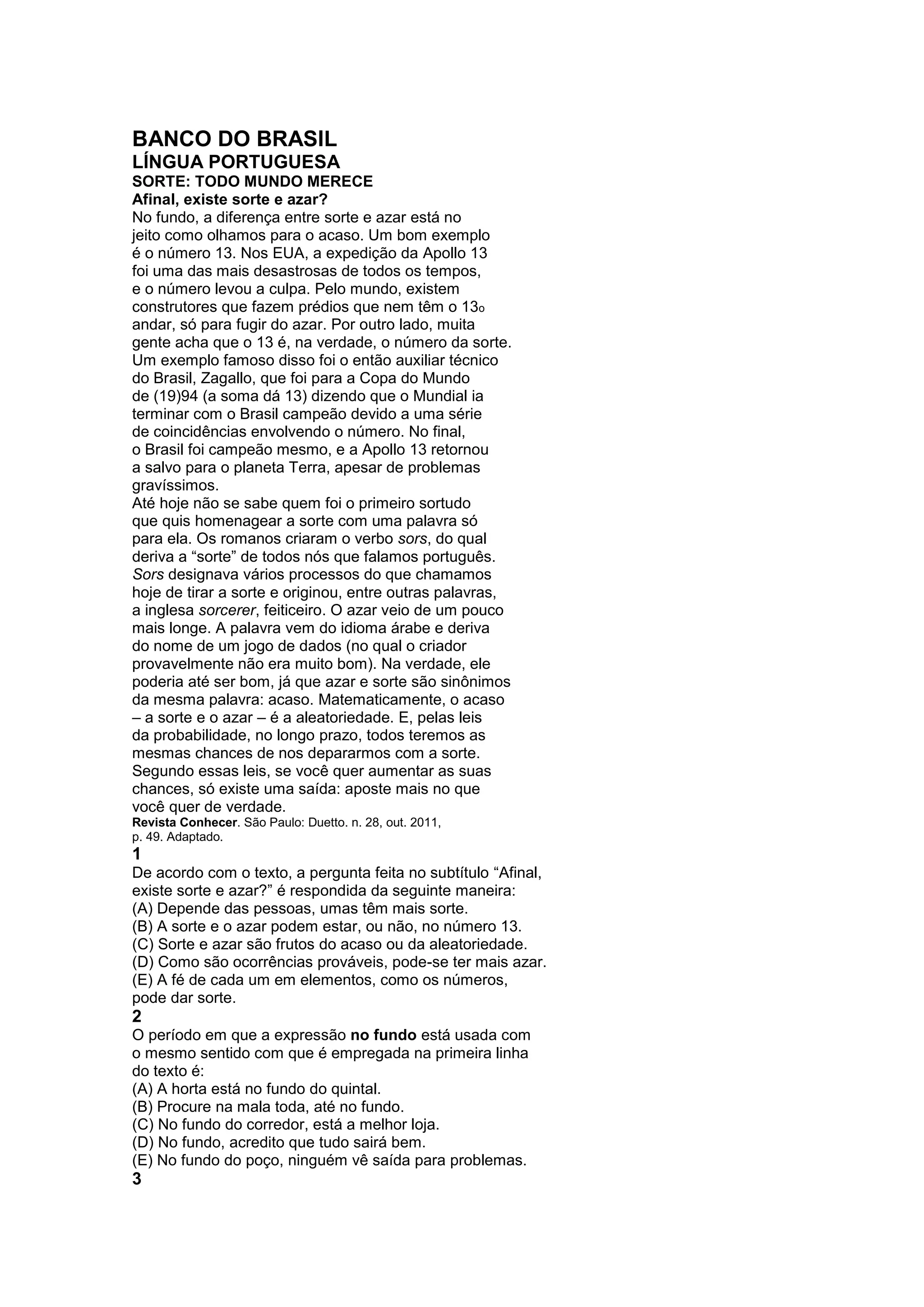 existe sorte e azar?” é respondida da seguinte maneira: