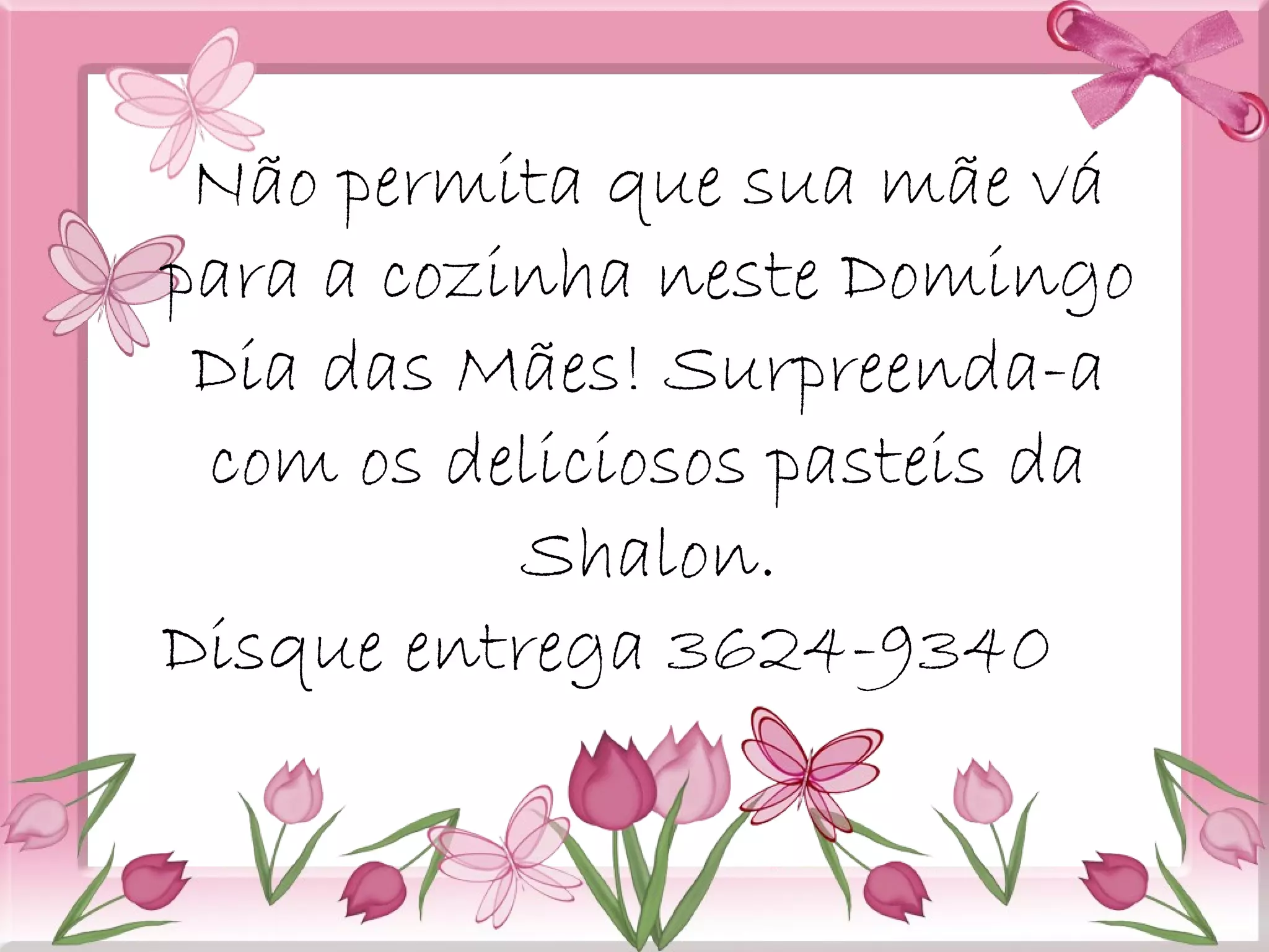 Não deixe sua mãe cozinhar no Dia das Mães! Surpreenda-a com pasteis da Shalon entregues em casa. Disque 3624-9340 para encomendar.