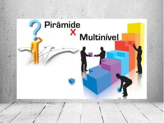 Este documento descreve as formas de ganhos de um sistema de marketing multinível, incluindo bônus de adesão, pares, equiparação, residual e vendas. Também diferencia marketing multinível de pirâmides financeiras ilegais, explicando que o marketing multinível tem sede, produtos e paga impostos.