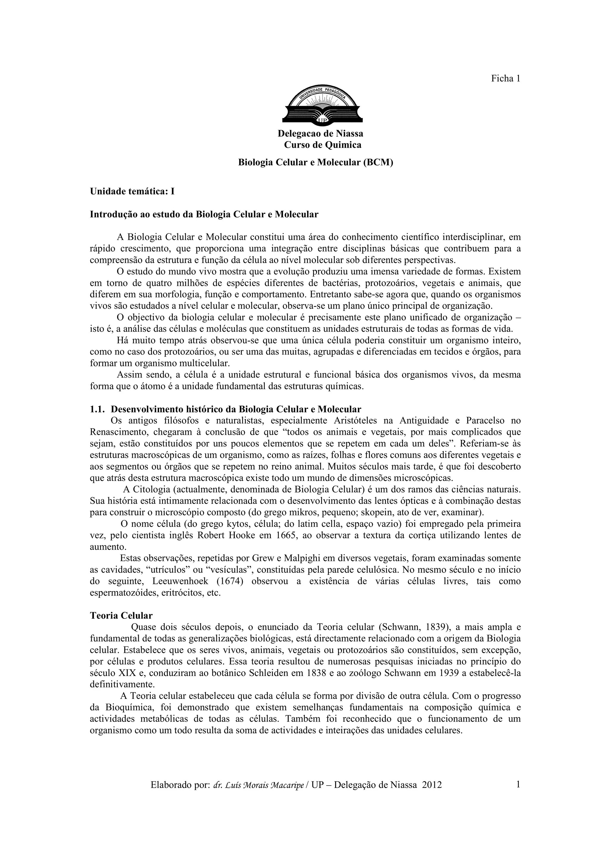 Este documento fornece uma introdução à Biologia Celular e Molecular. Aborda o desenvolvimento histórico da área, desde as primeiras observações de células no século XVII até os avanços nas técnicas de microscopia e compreensão molecular no século XX. Também discute os principais métodos e técnicas utilizados para estudar a célula, incluindo diferentes tipos de microscopia como a microscopia óptica, microscopia eletrônica e fluorescência.