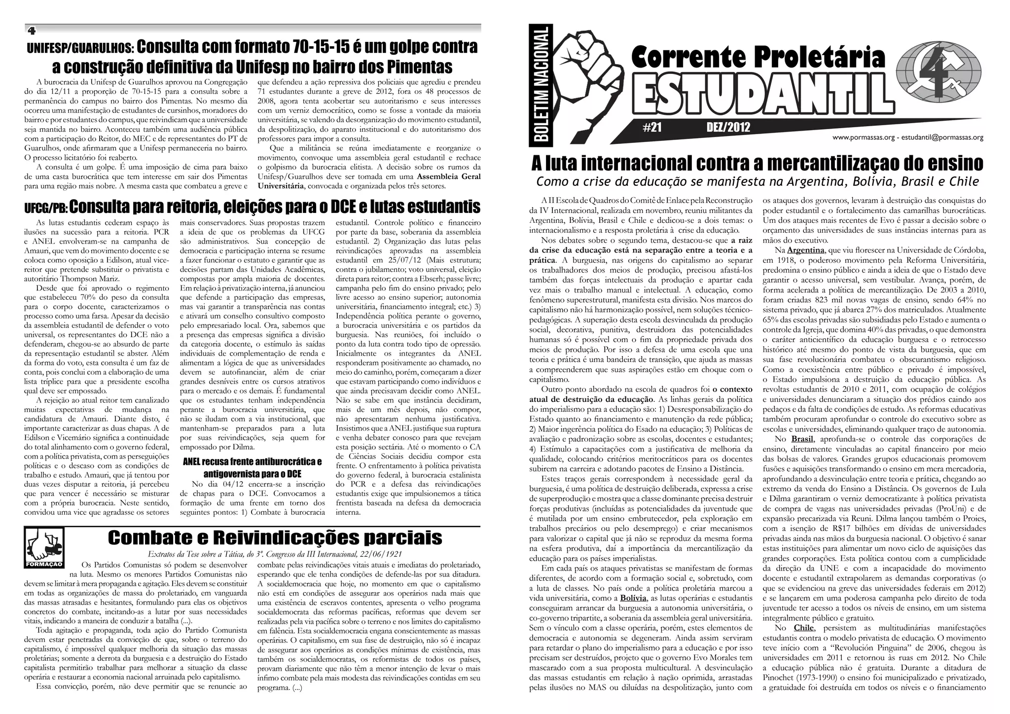 2) A consulta proposta é de 70% para docentes e 15% para estudantes e técnicos, contrariando a vontade da assembleia estudantil por voto universal.