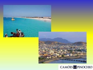 Cabo Verde é um país insular africano localizado no Oceano Atlântico a oeste do Senegal, constituído por 10 ilhas de origem vulcânica. O documento fornece informações básicas sobre Cabo Verde escrito por uma aluna para uma professora.