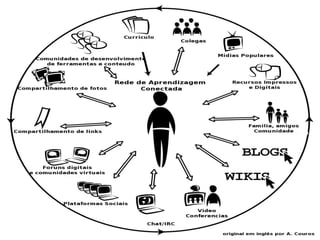O documento discute o impacto das tecnologias da informação e comunicação (TICs) no ensino de línguas, destacando a evolução e implementação dessas tecnologias em contextos educacionais variados. Também aborda as limitações do ensino tradicional, como a ênfase na leitura/escrita e a falta de interação real, propondo um modelo mais colaborativo e centrado no aluno. Além disso, enfatiza a importância do acesso a ferramentas digitais e plataformas de aprendizado para enriquecer a experiência educativa.