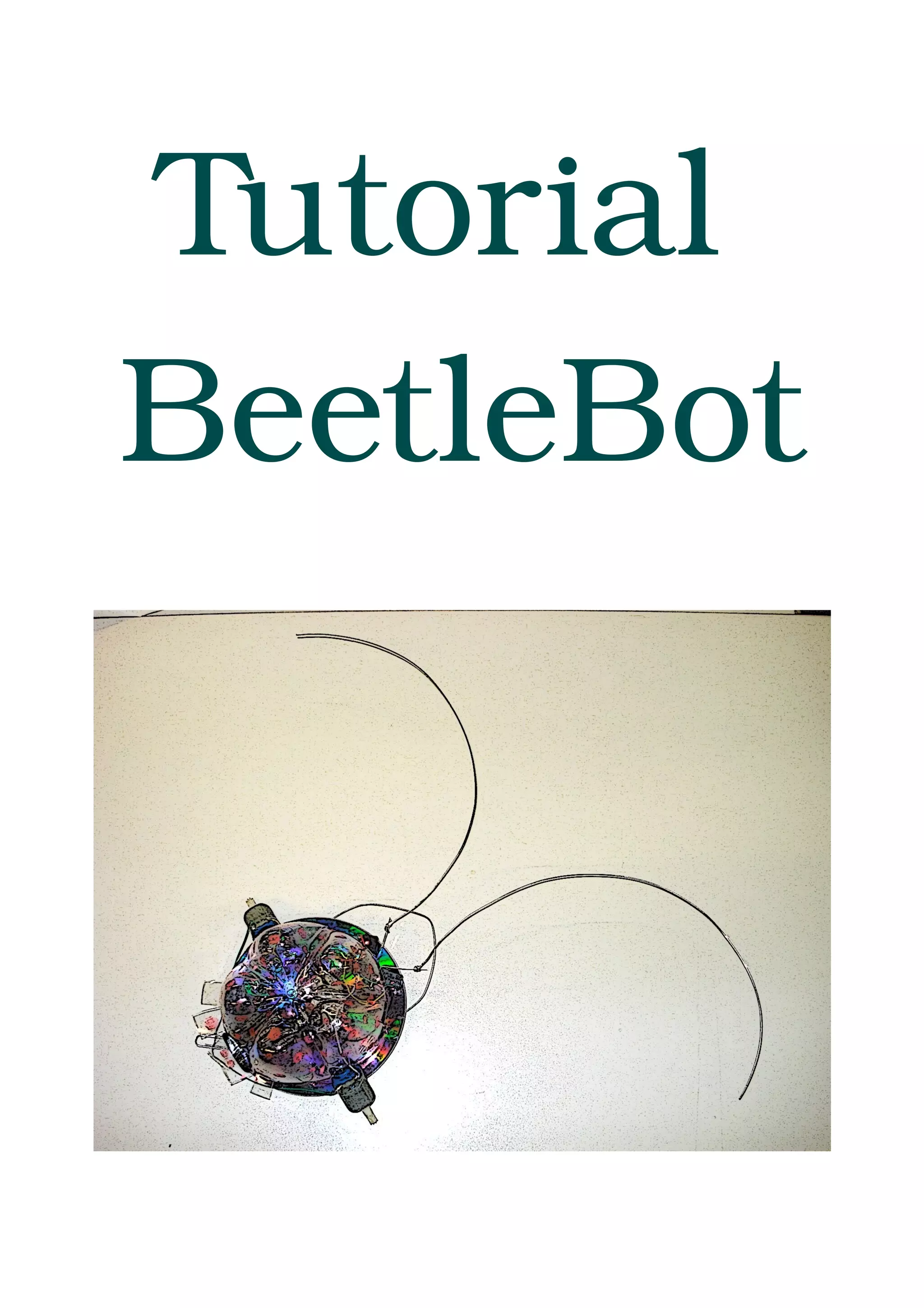 O documento fornece instruções passo-a-passo para construir um robô inseto chamado BeetleBot utilizando componentes simples como motores, sensores e pilhas. O tutorial explica os materiais necessários, o esquema elétrico e as etapas de soldagem para conectar os componentes e fazer o robô funcionar.