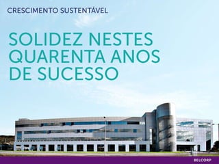 O documento descreve a missão e valores da empresa Belcorp. A missão é ser a empresa que mais contribui para a realização pessoal e beleza da mulher. Os valores centrais incluem liderança, paixão, compromisso, orgulho, respeito, confiança, transparência e integridade. A empresa acredita no crescimento sustentável baseado em qualidade, serviços, tecnologia e marcas vencedoras.