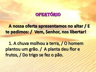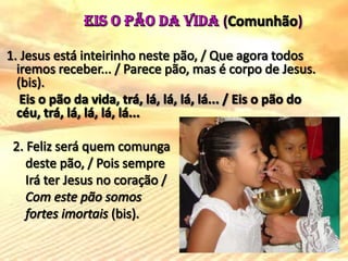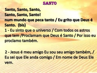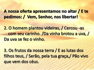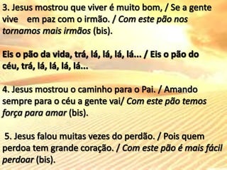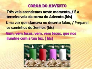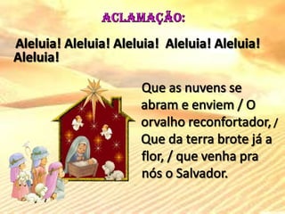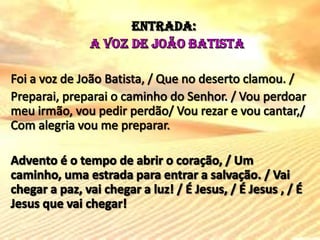 O documento é uma canção religiosa em português que celebra a anúncio do nascimento de Jesus. A canção descreve a voz do anjo sussurrando no ouvido da Virgem Maria sobre a chegada de Jesus, e como ela anunciará sua vinda aos sinos das catedrais. A canção também descreve Jesus ensinando sobre a importância da paz, do amor e do perdão.