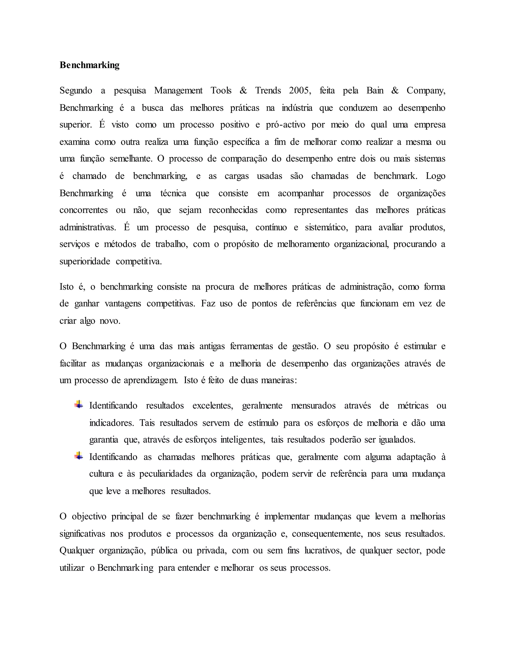identificar áreas de melhoria. Envolve pesquisar as melhores práticas da indústria para melhorar