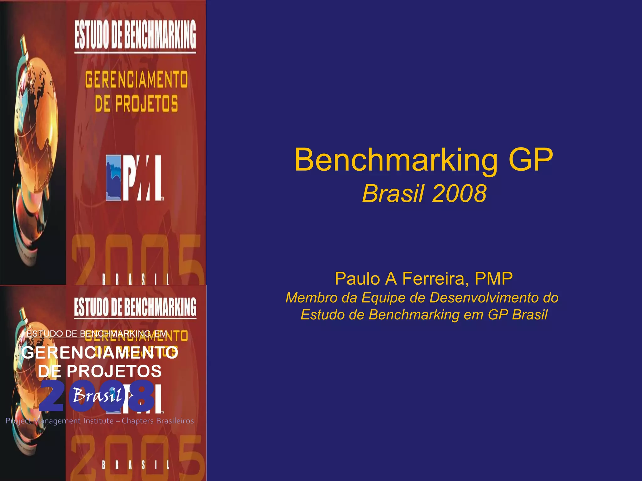 O estudo de benchmarking em gerenciamento de projetos no Brasil em 2008 avaliou 373 empresas sobre suas práticas de gerenciamento, oferecendo dados para melhoria e excelência em projetos. As organizações participaram de um questionário eletrônico e os dados foram analisados de forma confidencial, abrangendo aspectos como gestão de portfólio, metodologia e cultura organizacional. Os resultados são segmentados por setor, porte e região, visando ajudar empresas interessadas em aprimorar suas práticas na área.