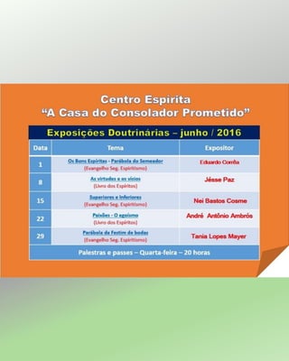 PROGRAMAÇÃO DAS REUNIÕES DOUTRINÁRIAS - 2016