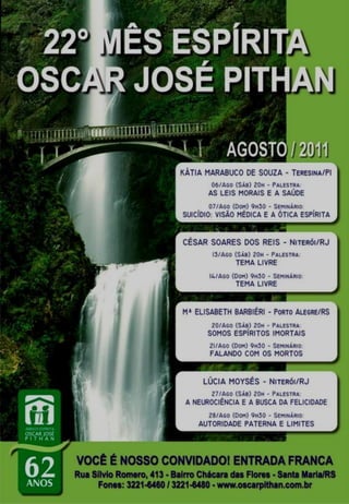 Este documento fornece informações sobre as atividades da Sociedade Espírita Luz e Caridade (S.E.L.C.) em julho de 2011, incluindo: