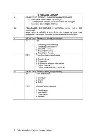 Este artigo discute novas abordagens para a avaliação dinâmica e autêntica utilizando tecnologias de aprendizagem. Propõe que a avaliação deixe de ser estática e passe a incorporar apoio, motivação e colaboração entre os estudantes. Fornece exemplos de como aplicações sociais podem ser usadas para criar comunidades de aprendizagem e novas formas de avaliação.
