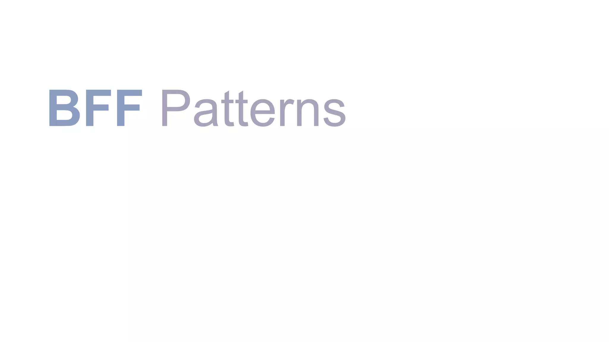 BFF Patterns apresenta os padrões Backend for Frontend (BFF) para microserviços. BFFs provêem uma camada intermediária entre as interfaces do usuário e os serviços back-end para centralizar a segurança, integração e adaptação de dados. BFFs são recomendados para casos como mocks de dados, agregação/parser de múltiplas requisições e adaptação de dados entre as camadas, mas não para agregações complexas ou uso como proxy.