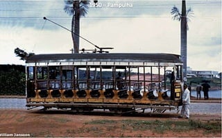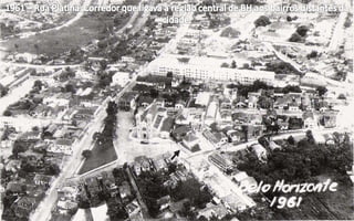 O documento descreve a evolução da infraestrutura e dos principais pontos da cidade de Belo Horizonte entre 1902 e 1950, mencionando a construção de vias como as avenidas Afonso Pena e Santos Dumont, praças como a Praça da Liberdade e Praça Sete, edifícios como o Palácio do Governo e o Teatro Municipal, e meios de transporte como o bonde.