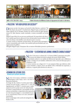 mar 2015 Boletim Informativo das Bibliotecas Escolares do Agrupamento de Escolas Dr. Júlio Martins