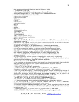 O documento fornece instruções sobre o Curso de Aperfeiçoamento de Sargentos Bombeiros Militares de 2010, incluindo detalhes sobre vagas disponíveis, requisitos de habilitação, cronograma de exames médicos e teste de aptidão física, e composição da comissão responsável por aplicar o teste físico. Além disso, designa uma comissão interna para realizar levantamento da carga de trabalho da 10a Subunidade de Bombeiros Militares.